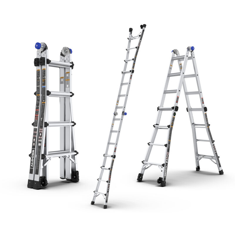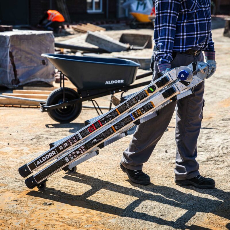 ALDORR Multistige 4×4 – 4,50 meter – ALDORR Professional er den stærkeste model i ALDORRs sortiment. Denne stige er designet til de mest krævende opgaver og giver ultimativ fleksibilitet, sikkerhed og rækkevidde. Takket være den solide aluminiumsramme, smarte højdeindstillinger og praktiske transporthjul er dette den ideelle stige til både professionelle håndværkere og ambitiøse gør-det-selv-brugere.